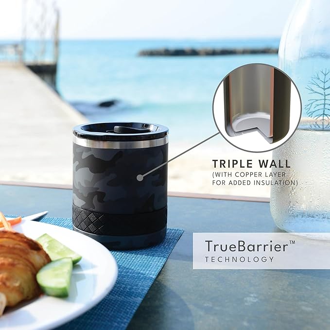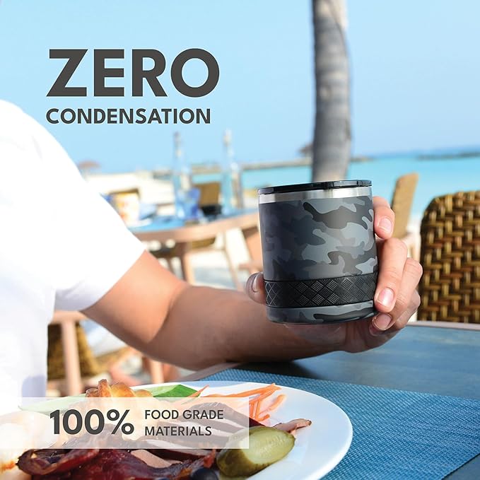 Elemental Recess Lowball Tumbler, 10oz Triple Wall Stainless Steel Cup with Non-Shattered Tritan Lid, Insulated Whiskey Glass, Insulated Coffee Tumbler Mug for Hot & Cold Drinks - Black Camo