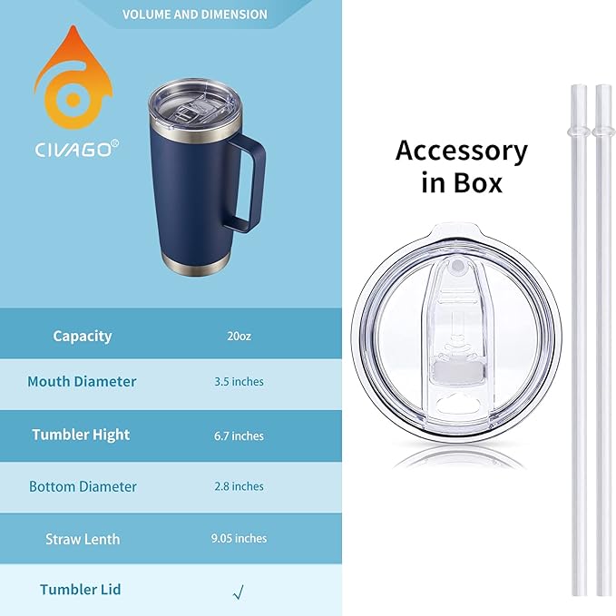 - LEAK PROOF LID AND STRAW:Each thermal coffee travel mug comes with a spill-proof slider lid and 2 straws, a drinking hole on the top for easy sipping. Two ways to drink make this mug the perfect choice for you at work or on the go.