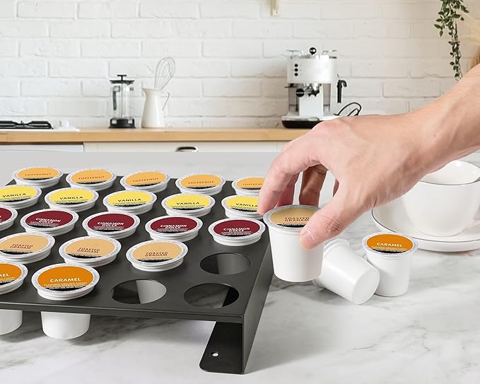- [Easy to Use and Maintain]: Coffee pod organizer for k cups is designed for convenience and practicality. The coffee pod storage organizer features a user-friendly design that allows for easy insertion and removal of K Cups. Additionally, its high-quality metal material is waterproof and easy to clean, ensuring hassle-free maintenance and longevity