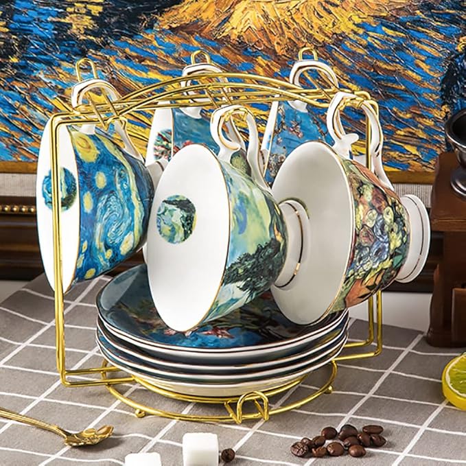 - Coffee Bar Accessories and Organizer: The new shape design espresso cup set can be perfectly integrated into your kitchen and show your personality. The solid steel base sits evenly on the table without tipping or leaning. The clean, curved lines and fresh finishes look at home in a modern kitchen. If this gets dirty from drink splatters easily wipe with a damp cloth or sponge