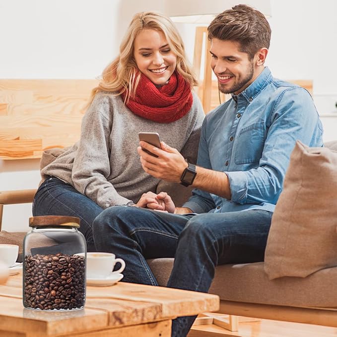 - ★ GRAEAT GIFT: Coffee storage jar with wood scoop,food grade silicone sealing ring, high borosilicate glass. Acacia Lid and silicone sealing ring keep air out, creating an airtight environment to keep contents dry. Non-toxic and dishwasher safe, hand wash recommended.Nice gift for Coffee lover, barista,family,friend,as a holiday gift.