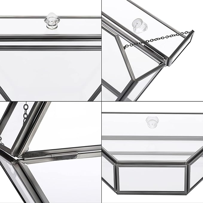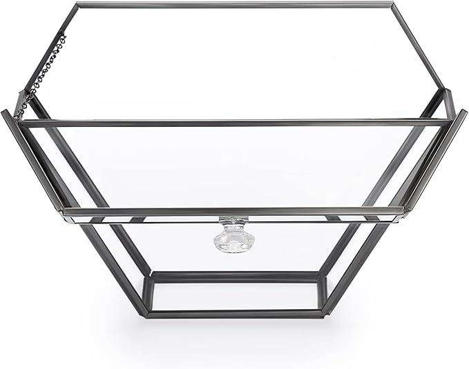- ♥Unique Diamond Shape - This coffee filter holder has been made with black metal and thick glass to gives contents a luxurious look while showcasing items.Comes with a lid and a chain on the inside to support the hinged lid, convenient, dust-proof and keeps the paper filters clean.There is a crystal handle on the clear glass cover for easy opening.