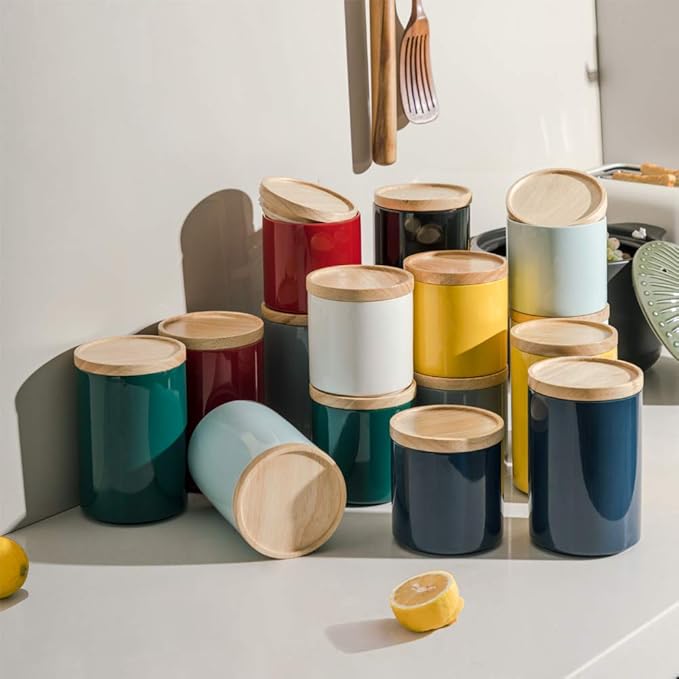 - Ceramic Material - Sweejar food storage containers are made of food grade, smooth porcelain. The containers with wooden lid and rubber seal to ensure a true airtight seal and lightproof. They are good for maintaining food and seasoning fresh.