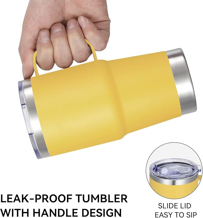 VEGOND 20 oz Tumbler with Handle Lid and Straw, Stainless Steel Insulated Travel Coffee Mug Spill Proof Double Wall Metal Tumbler Cup Keeps Drink Hot and Cold, Yellow 1 Pack