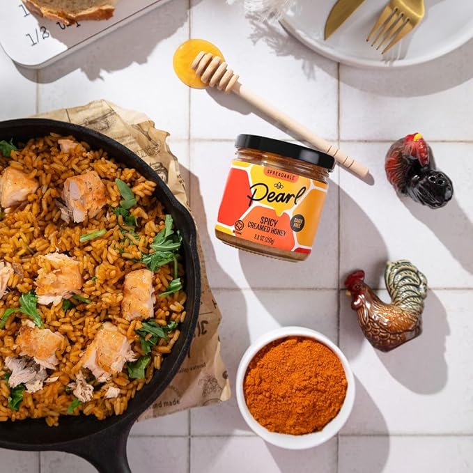 Pearl Honey Spreads - Organic Creamed Raw Honey Spicy Cayenne Flavor- Chemical Free, Dairy Free, Soy Free & 100% Natural Flavor | 8.8oz Jar