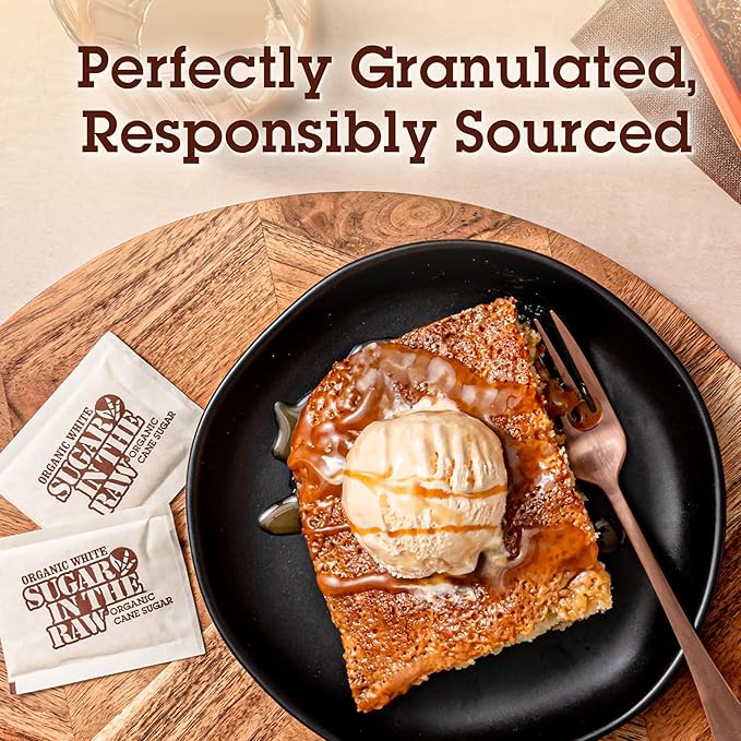 Sugar In The Raw Organic Granulated White Premium Cane Sugar, No Added Flavors or erythritol, Pure Natural Sweetener, Hot & Cold Drinks, Coffee, Tea Vegan, Gluten-Free, Non-GMO, Bulk Sugar, 250 ct packets (1-Pack)