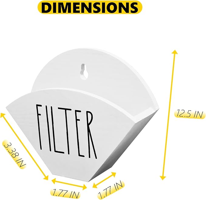 - FARMHOUSE STYLE --- The coffee cone stand features a smooth surface and a farmhouse font with the word [ FILTER ] written on it, which makes the coffee filter storage container vividly presenting the rustic style that is attractive and classic.