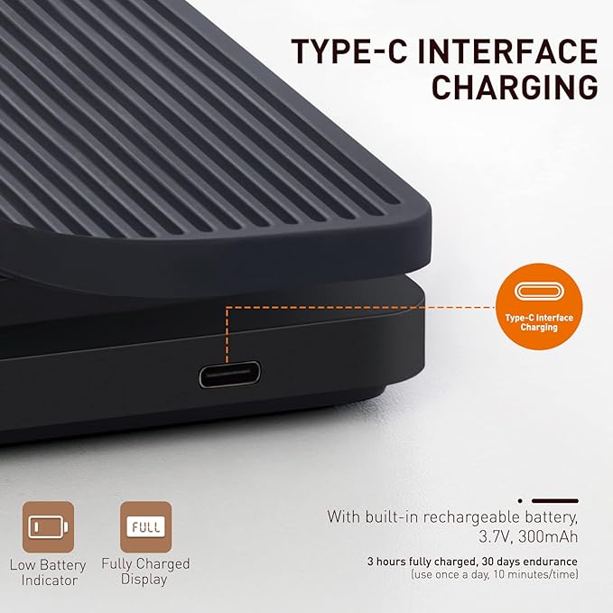 - USB Type-C Charging: Built-in 600mAh rechargeable lithium battery. More environmentally friendly and safe, can be fully charged in 3 hours and last for 30 days - use once a day, 10 minutes/time