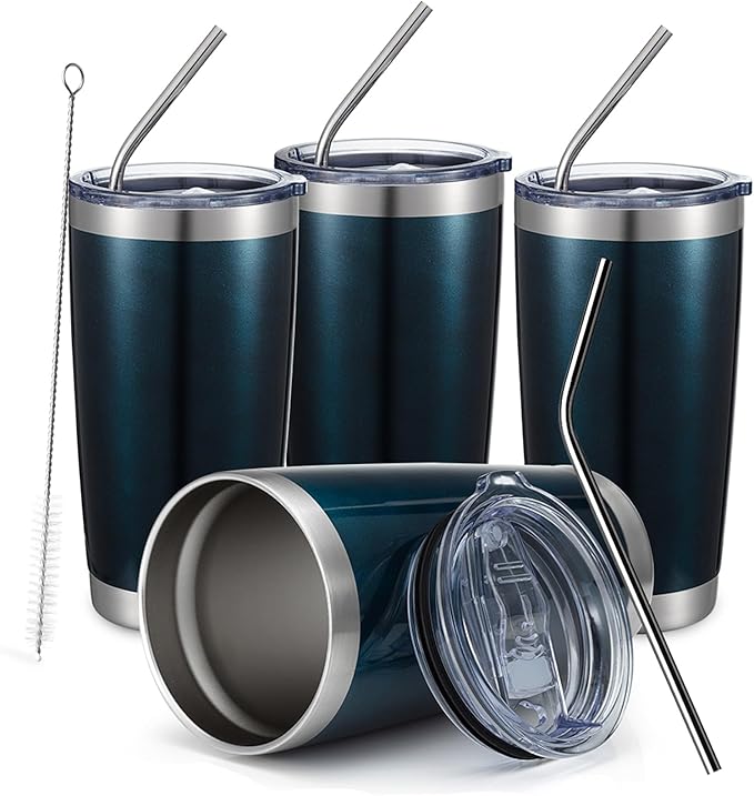 - [Exclusive Bonus Bundle]4*20 oz tumbler with splash-proof slide lid, 4*straw,2*straw brush. The lid is splash-proof and perfect for office, school, trip and picnic. The great value tumbler suit will save your time and money