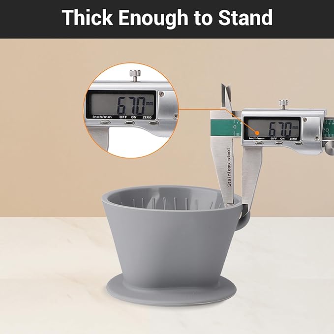 - Long-lasting: Made from premium silicone, the drip coffee maker is sturdy and not fragile. Unlike glass or ceramic coffee maker, silicone is more fall-resistant, not easy to damage. No more worrying about coffee dripping mug being broken by kids or pets by accident. Plus, the silicone material is temperature-resistant and can handle hot water without degrading or warping. It's a smart investment for any coffee enthusiasts.