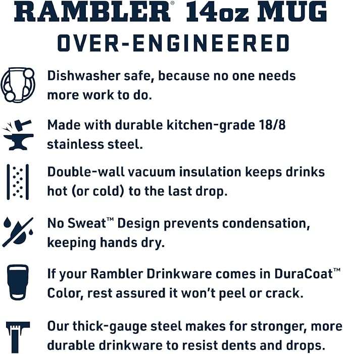 - Unlike traditional camp mugs, this double-wall vacuum-insulated body protects hands from hot or cold contents while keeping coffee, chili, oatmeal – you name it – well-insulated