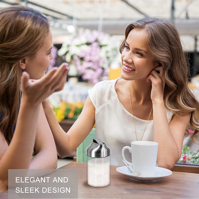 - Ideal Sugar Dispenser: The bottle is made of high-quality stainless steel lid and foodgrade glass. With a total capacity of 7 ounces, the smaller size allows you to easily control the amount you choose.