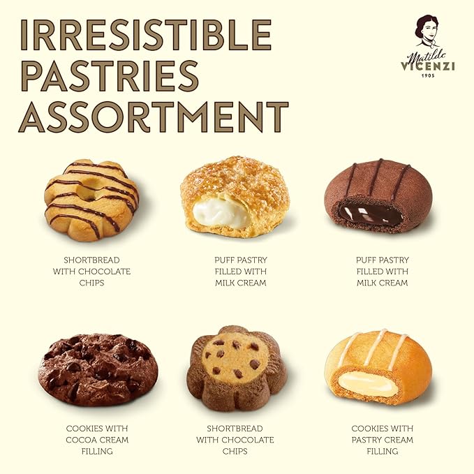 - Matilde Vicenzi Gift Box - A delicious selection of six traditional Italian cookies recipes packaged in a 32 oz gift box decorated with a pink heart. Made in Italy, Kosher Dairy cookies for Holidays, Mother's Day, Father's Day, Teacher, Birthday, Get Well, Thank You and other special occasions.
