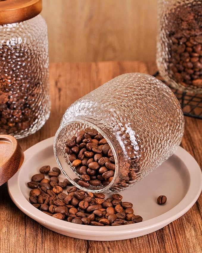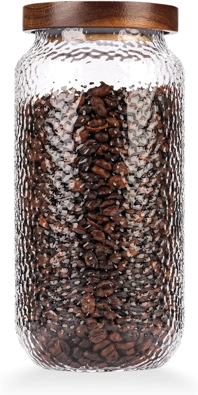 WHJY Glass Storage Container with Lid, Airtight Glass Jars, Farmhouse Tea Canister, Dog Treat Jar for Pet, Irregularity Texture Glass Candy Cookies Coffee Canister Jar Bath salt Container - 34oz