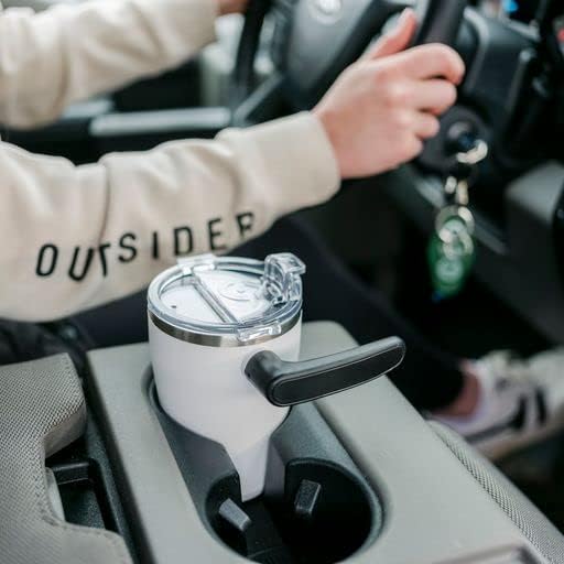 OUTSIDER Stainless Steel Vacuum Insulated Coffee Mug/Cup with Rotating Handle and Spill Proof Lid – Great Travel Tumbler for Outdoor, Home, Office – 17 ounces, White