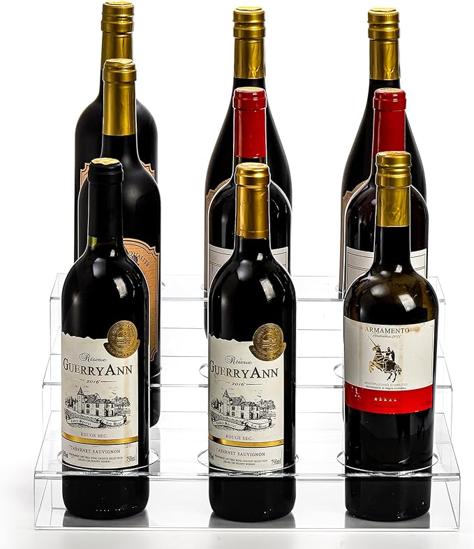 - Great Organizer: Each wine bottle stand can hold up 9 bottles at one time. The bottle stand will help you reduce the confusing clutter of your bottle storage and selection of wine bottles, beverages, or syrups