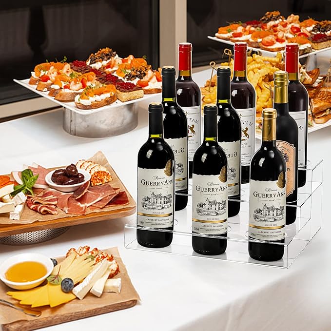 - Great Decor: The clear acrylic look of the wine holders stands for counter can easily match with any decorations. A great supplement to coffee shops, bar, home bar, party. Fully assembled, no complicated assemble operation, just open the paper box and use it