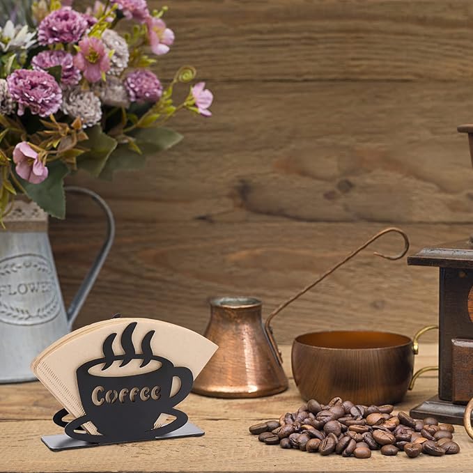 - ☕Unique Appearance Design - This coffee filter holder has been made of high quality metal, smooth surface, strong and durable. Cute black coffee cup shape design, the middle engraved with the words "coffee", very cafe atmosphere, it can make coffee lovers a small coffee station looks more classy,it is different and modern.