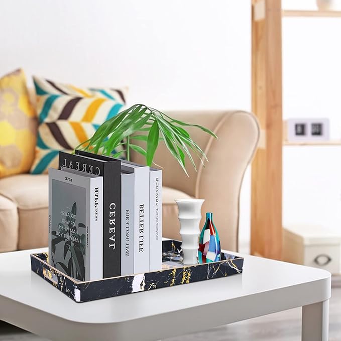 - 【Multipurpose Serving Trays】Designed for display and storage, this black marble serving tray can be used as a decorative tray, makeup tray, jewelry tray, service tray and desktop organization tray.This serving tray can also be used as a storage box for small items such as keys or TV remote controls. Also perfect for serving snacks, breakfast lunch or dinner.