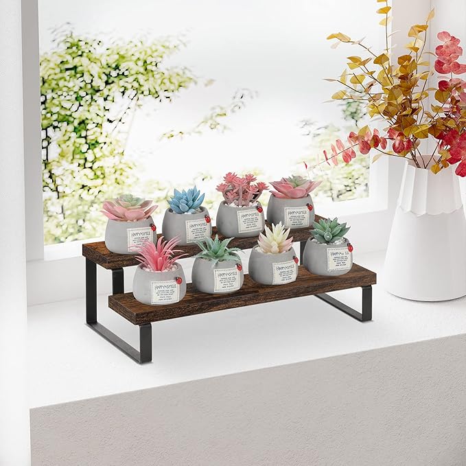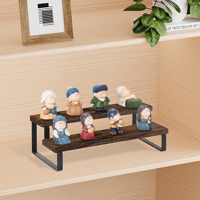 - Convenient Design: The stepped design makes efficient use of your counter space. This wooden display riser is a great idea for displaying toy figurines in cabinets, celebrating party desserts, and cosmetics on the dresser. The raised tiers help to create an eye-catching feature for your items.