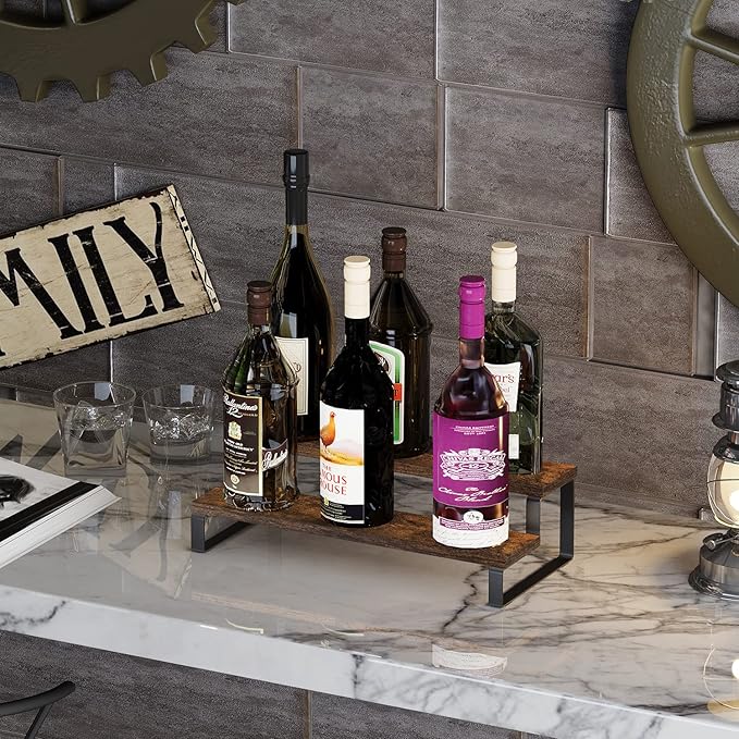 - Quick Setup & Easy Cleaning: You can have this 2-tier display riser stand assembled in 10 minutes with detailed instructions and tools. The wooden surface is waterproof and dust-free, a damp cloth could keep the counter shelf clean. (Assembly tools and accessories are included in the package)