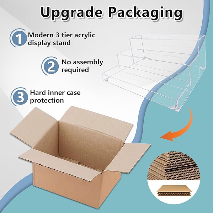 - 【WIDLY USED】This 3 tier clear acrylic liquor bottle display shelf can effectively display multiple bottles, which can satisfy your need for any bottle display. The three tier size of the acrylic display stand is perfect for displaying a variety of small sized collectibles such as funko pops, figures, rocks etc. It can also be used to organise the display of other items such as perfume, make up, cologne, coffee syrup etc.