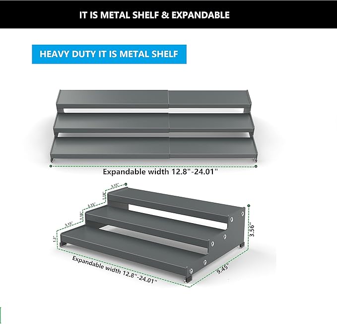 Spice Rack Organizer for Cabinet, 3 Tier Expandable Spices Storage, Great for Kitchen Cabinets, Cupboard,Pantry and Countertop More(Gun-Gray, 1 PACK/GUN-GRAY)