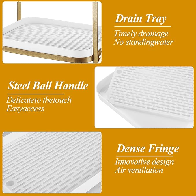 - Removable Drain Trays for Easy Cleaning: The 2 removable trays of this drying rack can be used as tea trays or coffee trays. The hollow grid design ensures efficient water drainage, preventing any dripping onto the cooking countertop. The removable trays can be easily cleaned by taking out the upper drain board and rinsing it with water