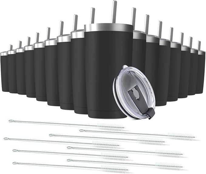 16 pack 20 oz Stainless Steel Insulated Tumbler with Straw and Lid, Double Wall Travel Coffee Mug Vacuum Insulated Bulk Tumbler, Suitable for Vehicle Cup Holders (Black)