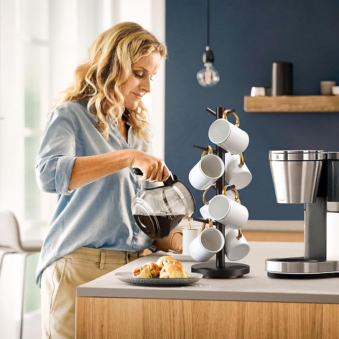 - SPACE SAVING & BEAUTIFUL APPEARANC: This coffee cup storage organizer can hold up to 8 mugs, making your mugs stored properly, and look neat and clean. The coffee mug stand can be widely used on the counter, coffee bar, cabinet, coffee organizer station, etc. freeing up more storage space for you. Moreover, the coffee cup tree has a simple and elegant look, adding a touch of elegance to decorate your room.