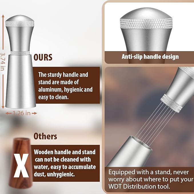 - 【Needles Removable as you like】 Unlike many other espresso tools, our espresso distribution tool can be easily assemble or disassemble, you can adjust the number of needles to 3/4/5/6/7 as needed.