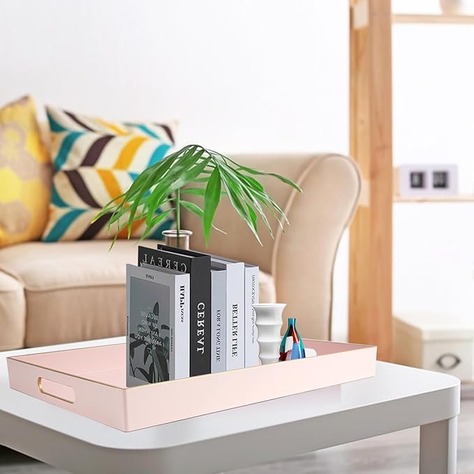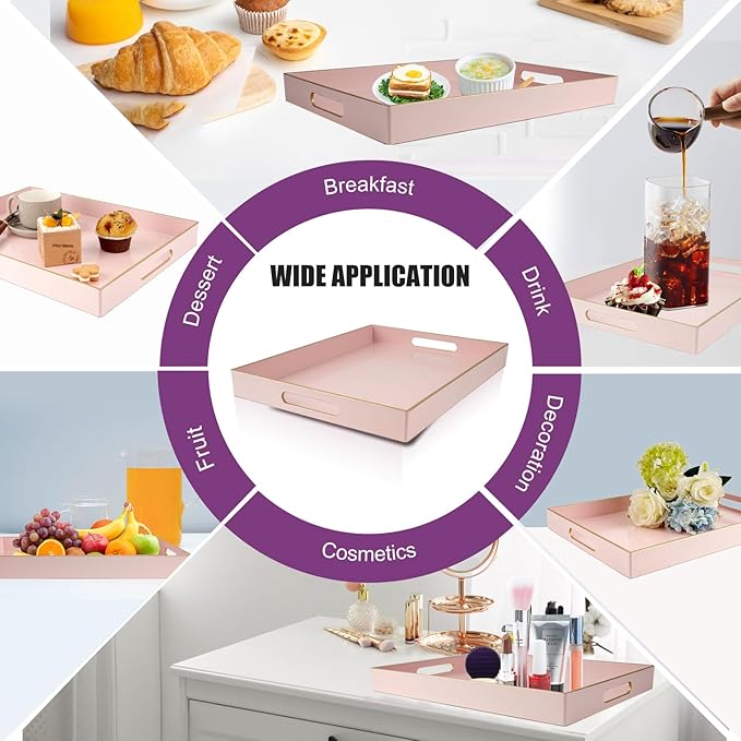 - 【Multipurpose Serving Trays】Designed for display and storage, this pink serving tray can be used as a decorative tray, makeup tray, jewelry tray, service tray and desktop organization tray.This serving tray can also be used as a storage box for small items such as keys or TV remote controls. Also perfect for serving snacks, breakfast lunch or dinner.