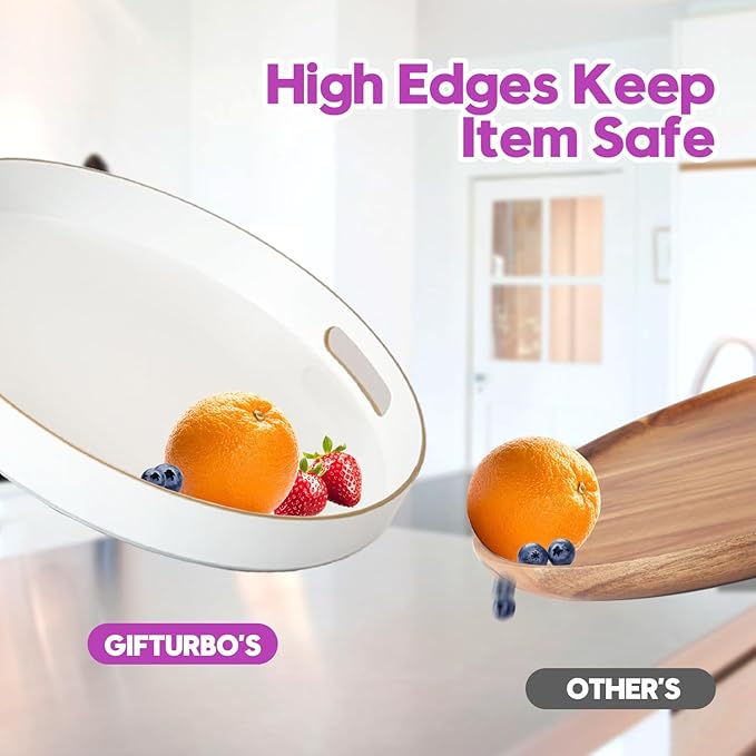 - 【Multipurpose Serving Trays】Designed for display and storage, this white round plastic serving tray can be used as a decorative tray, makeup tray, jewelry tray, service tray and desktop organization tray.This serving tray can also be used as a storage box for small items such as keys or TV remote controls. Also perfect for serving snacks, breakfast lunch or dinner