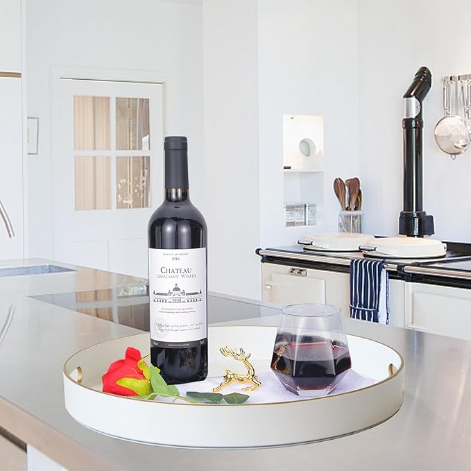 Gifturbo White Round Serving Tray,Decorative Serving Trays with Handles, Coffee Table Tray Ottoman Round Plastic Trays for Living Room, Bathroom