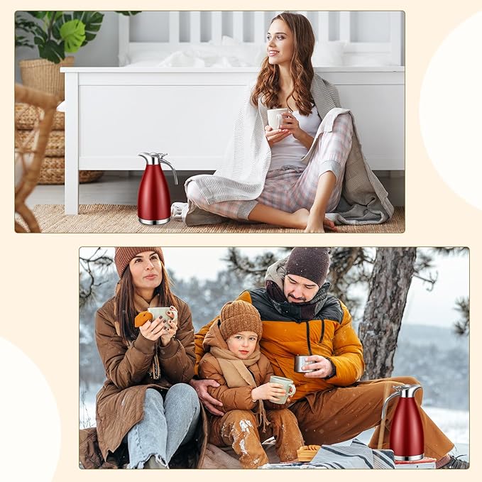 - 304 Stainless Steel Material: the package comes with 2 pieces of thermal coffee carafes ( red) and 2 pieces of cleaning brushes ( blue handle) , the inside of the carafe is made of 304 stainless steel ( Please note that the top cover and handle are plastic) , solid and reliable to use for a long time, and they are safe for you to put water inside, they will not rust easily, and convenient to clean