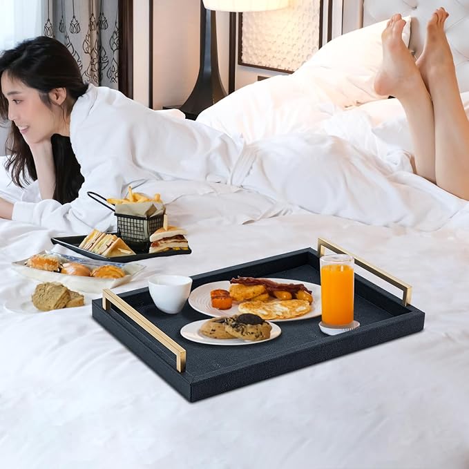- Minimalist Design: Gorgeous Shagreen leather with Brushed Gold Handles adds a touch of elegance to any table setting or home decor,designed specifically for serving and showcasing your favorite beverages and snacks in style, adding a touch of sophistication to any dining or entertaining experience.