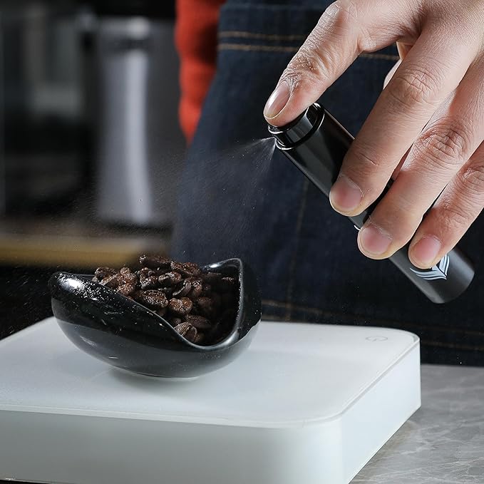 - Our espresso bean dosing cup works alongside the coffee bean spray bottle and coffee mister to help you eliminate static before grinding. Just one spritz from the espresso water spray or rdt spray bottle ensures smoother dosing and cleaner shots