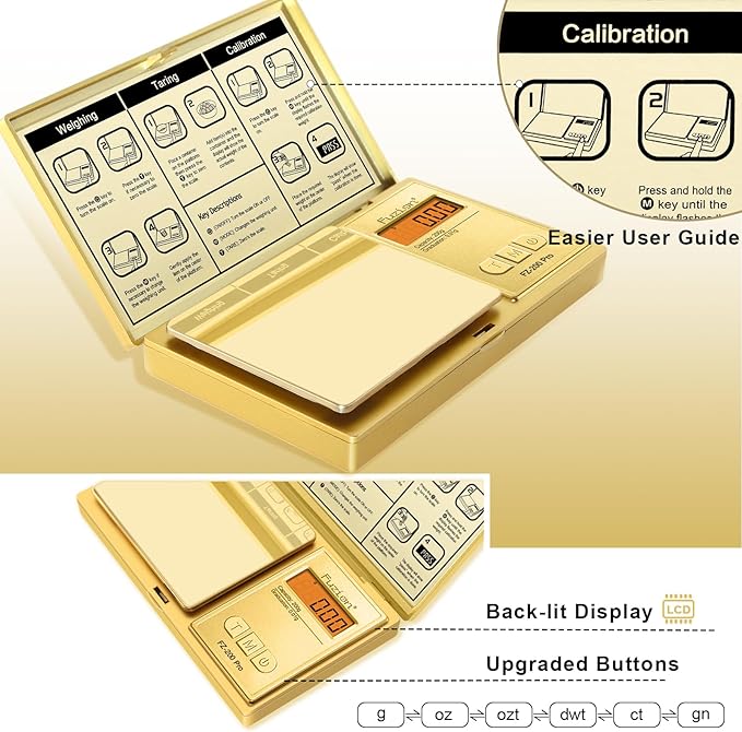 - Premium Build: Crafted with stainless steel and finished with gold titanium plating, the scale combines durability with a sleek, mirror-like finish.