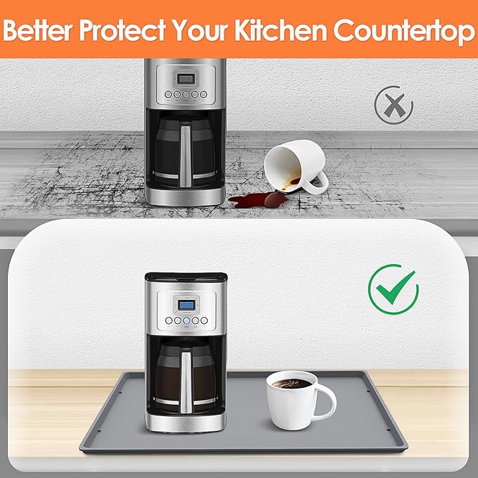 - 100% Water Does Not Flow Out: The coffee maker mat is built with 3/5" raised edge, like a tray and it can contain any liquid spills from the coffee maker. The premium material not only protect your countertop from scratches, especially protect the wood countertop, but also keep your your countertop tidy, clean.