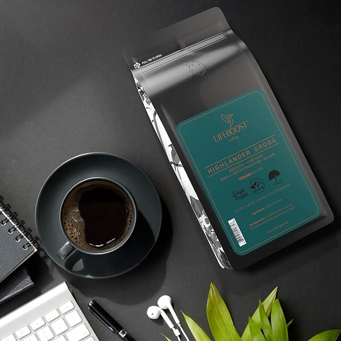 Lifeboost Highlander Grogg Coffee Ground - Low Acid Single Origin Flavored Coffee - Non-GMO Highlander Grogg Ground Coffee Third Party Tested For Mycotoxins & Pesticides - 12 Ounces