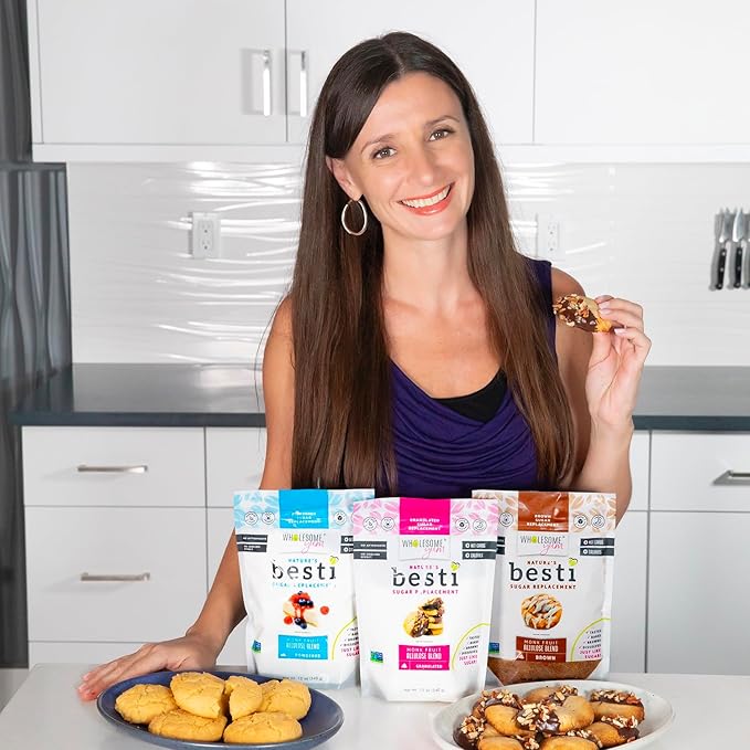 Wholesome Yum Besti Natural Brown Sugar Substitute - Keto Brown Monk Fruit Sweetener Blend With Allulose (No Erythritol) - Non GMO, Zero Carb, Zero Calorie, Sugar Free, No Aftertaste (12 oz, 2 Pack)