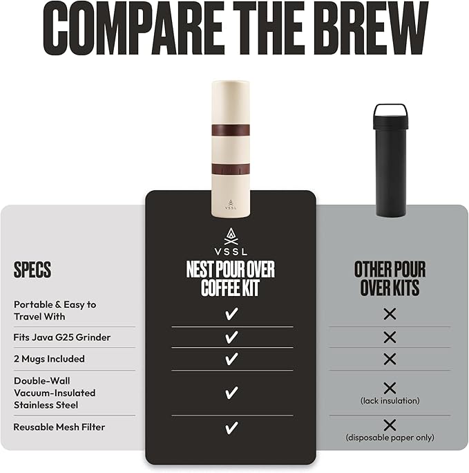 - Built to Last a Lifetime - VSSL Products are built to adventure as hard as you do. Covered by our Geared For Life warranty, our travel pour over coffee kit is protected against manufacturer defects for life.