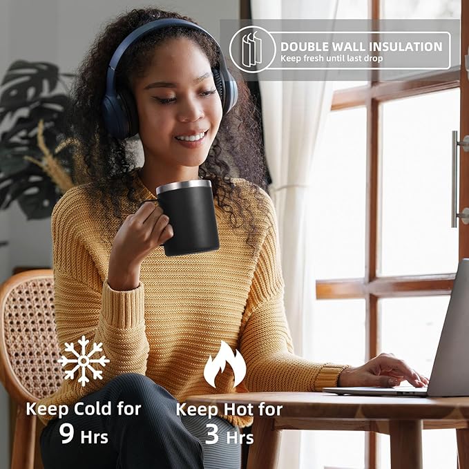 - 【Double wall insulation technology】Volhoply's mugs are made with double-layer vacuum insulation technology,which can keep your drinks warm for more than 3 hours and cold for more than 9 hours,both indoors and outdoors.You can enjoy your favorite drinks for a long time,keeping every sip fresh until the last drop!