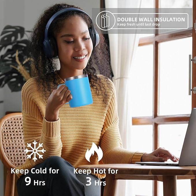 - 【Double wall insulation technology】Volhoply's mugs are made with double-layer vacuum insulation technology,which can keep your drinks warm for more than 3 hours and cold for more than 9 hours,both indoors and outdoors.You can enjoy your favorite drinks for a long time,keeping every sip fresh until the last drop!