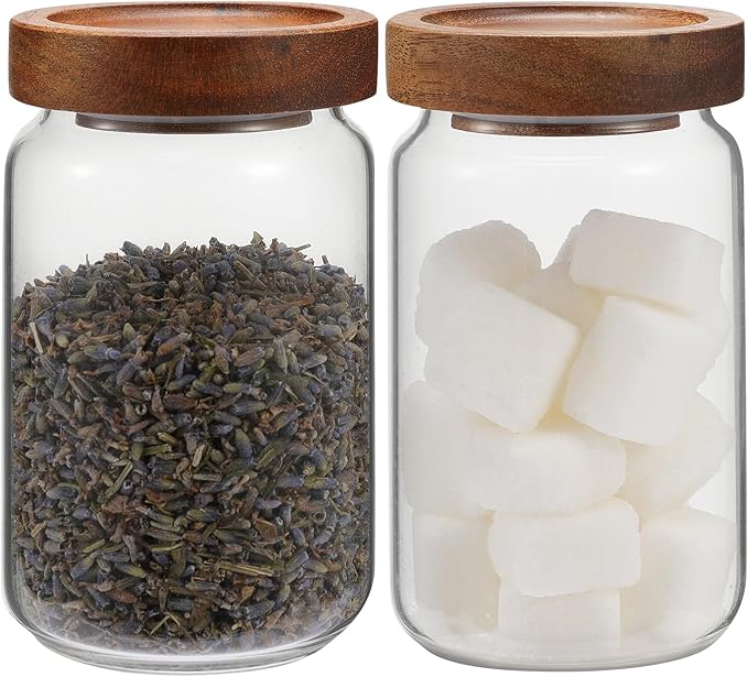 - - ★ AIRTIGHT WOOD LID WITH SILICONE RING - Acacia Lid with sealing strip , food-grade wood lid, glass jar with lid made by food grade material ,it is healthier choice. Superior quality seals keep out dust, and other contaminants. Your food will stay fresher for longer and be seamlessly organized.Don't let any chemical flavors or microplastics leach into your coffee beans or food or other items.