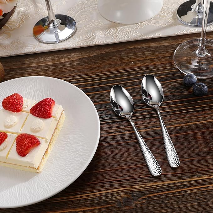 KEAWELL Premium Louise Hammered Demitasse Espresso Spoons: 6-Piece/12-Piece Set, 18/10 Stainless Steel, Mini Coffee Spoons, Small Spoon Set, Brightly-Mirror polished, Dishwasher Safe (6, 5.6 inches)