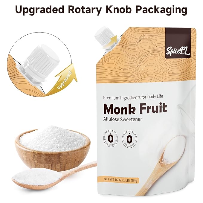 - Enhanced Leak-Proof Design: SPICEEL monk fruit sweetener features a secure twist knob, providing better protection against leaks during transport compared to seal-strip designs. It is easy to reseal tightly after opening, keeping the product fresh and preventing moisture buildup and clumping.