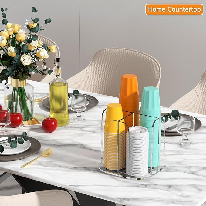 - NO ASSEMBLY - cup dispenser is ready to use right out of the packing box, great coffee bar accessories unlike other DIY mesh or metal cup holder with excess installation and complicated instruction that drives you crazy.