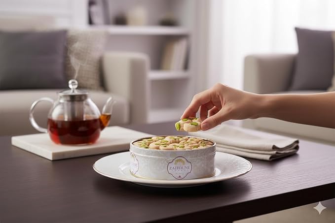 - DECADENTLY DELICIOUS: Each crumbly Ghraybeh cookie offers a classic shortbread taste, topped with a premium pistachio for an unforgettable flavour experience; a true taste of the Middle East
