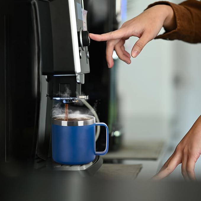 - 14oz Coffee Cup with Handle:Comfortable handle design, easy grip, making it the great outdoor travel mug and the coffee cup in the office for everyday use as well